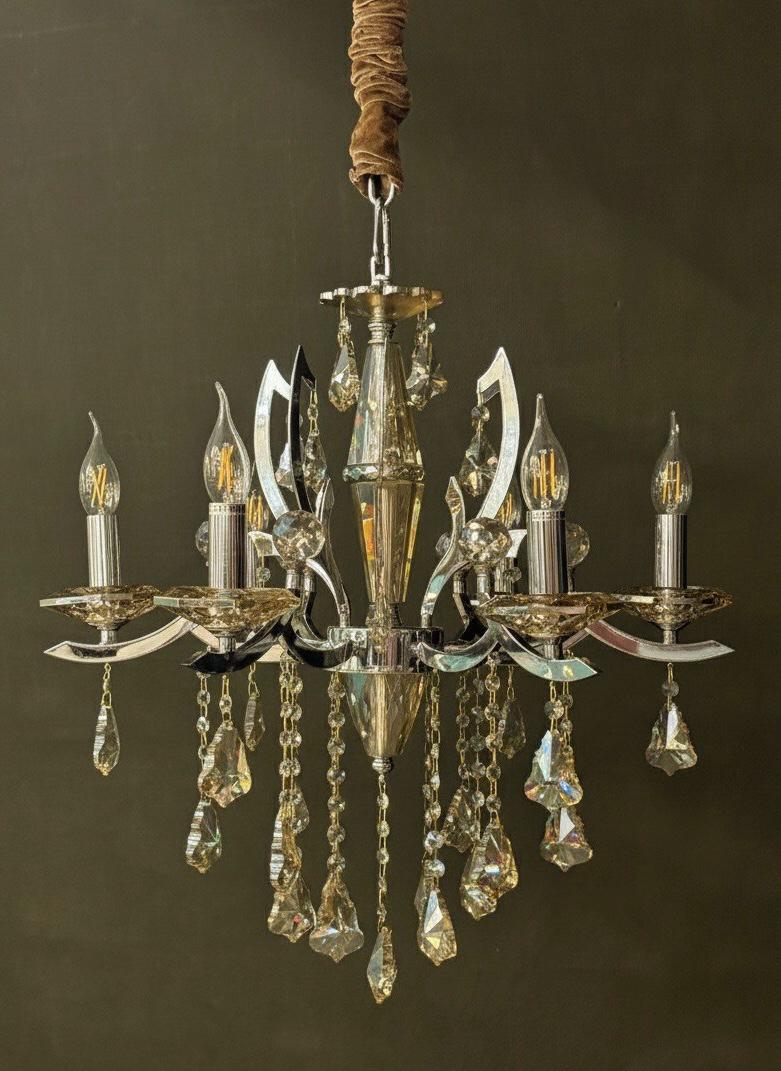 لوستر ۶ شعله وارداتی با طراحی زیبا و چشمنواز، ترکیبی از فلز مقاوم و کریستالهای درخشان است که جلوهای خاص به فضای خانه میبخشد. رنگ بدنه این لوستر ثابت و ماندگار بوده و در گذر زمان تغییر نمیکند، بنابراین همیشه همان زیبایی اولیه را حفظ خواهد کرد. این محصول برای استفاده از لامپهای شمعی طراحی شده تا نور گرم و دلنشین آن، فضایی رمانتیک و مجلل ایجاد کند. انعکاس نور در کریستالها جلوهای خیرهکننده به محیط میدهد و خانه شما را به فضایی لوکس و متفاوت تبدیل میکند.